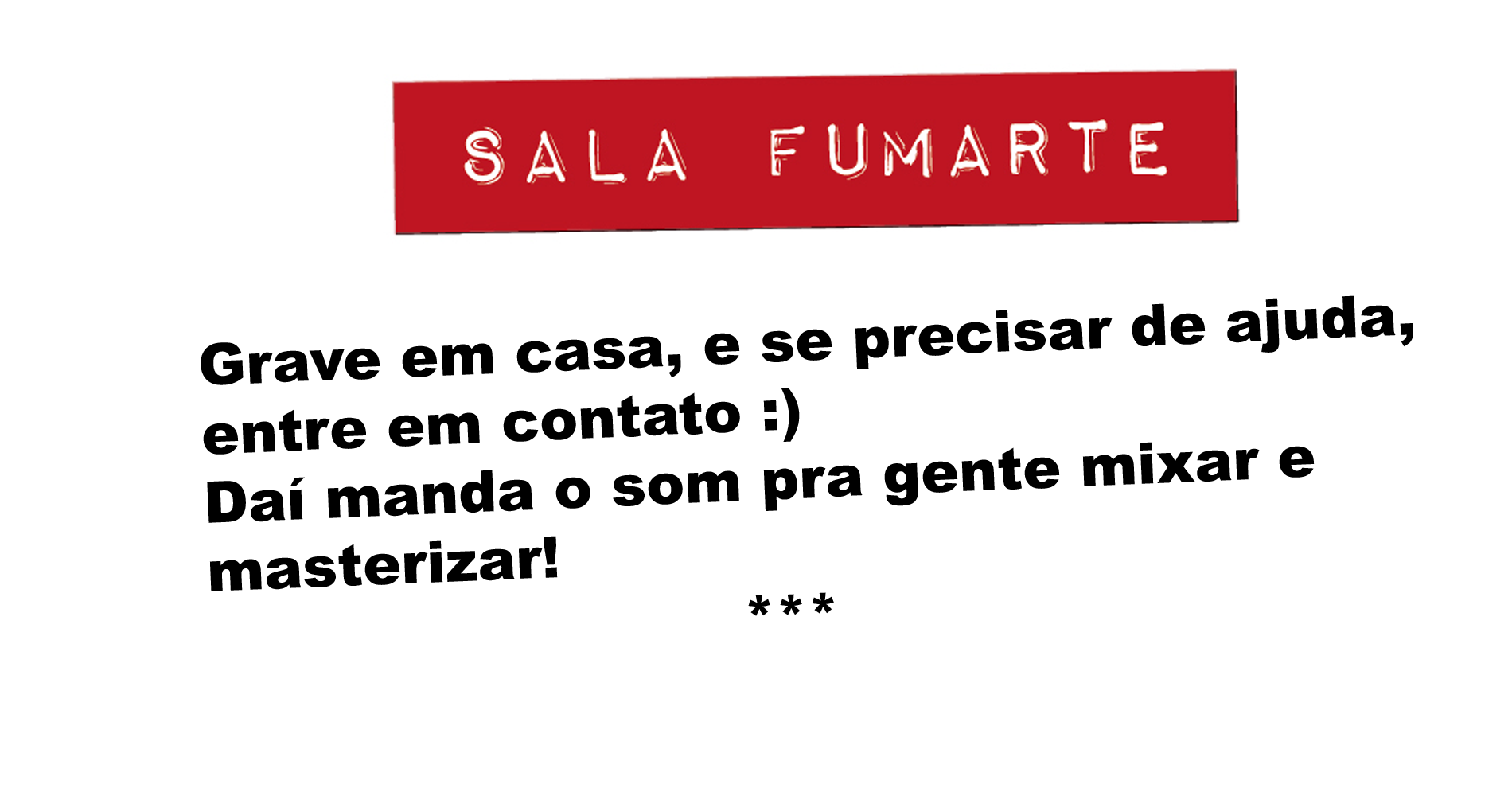 Em atividade desde 2015, a Sala Fumarte é um espaço dedicado a gravações musicais e recebe os mais variados artistas do Distrito Federal. Para nós, o mais importante é capturar a essência do artista, ajudá-lo a desenvolver seu trabalho da maneira mais simples, eficiente e espontânea. Para tanto, temos disponíveis uma mistura de equipamentos vintage, analógicos e digitais, e duas salas de gravação para proporcionar conforto e possíbilidades sonoras tanto para gravações ao vivo quanto para overdubs, mixagens e masterizações.